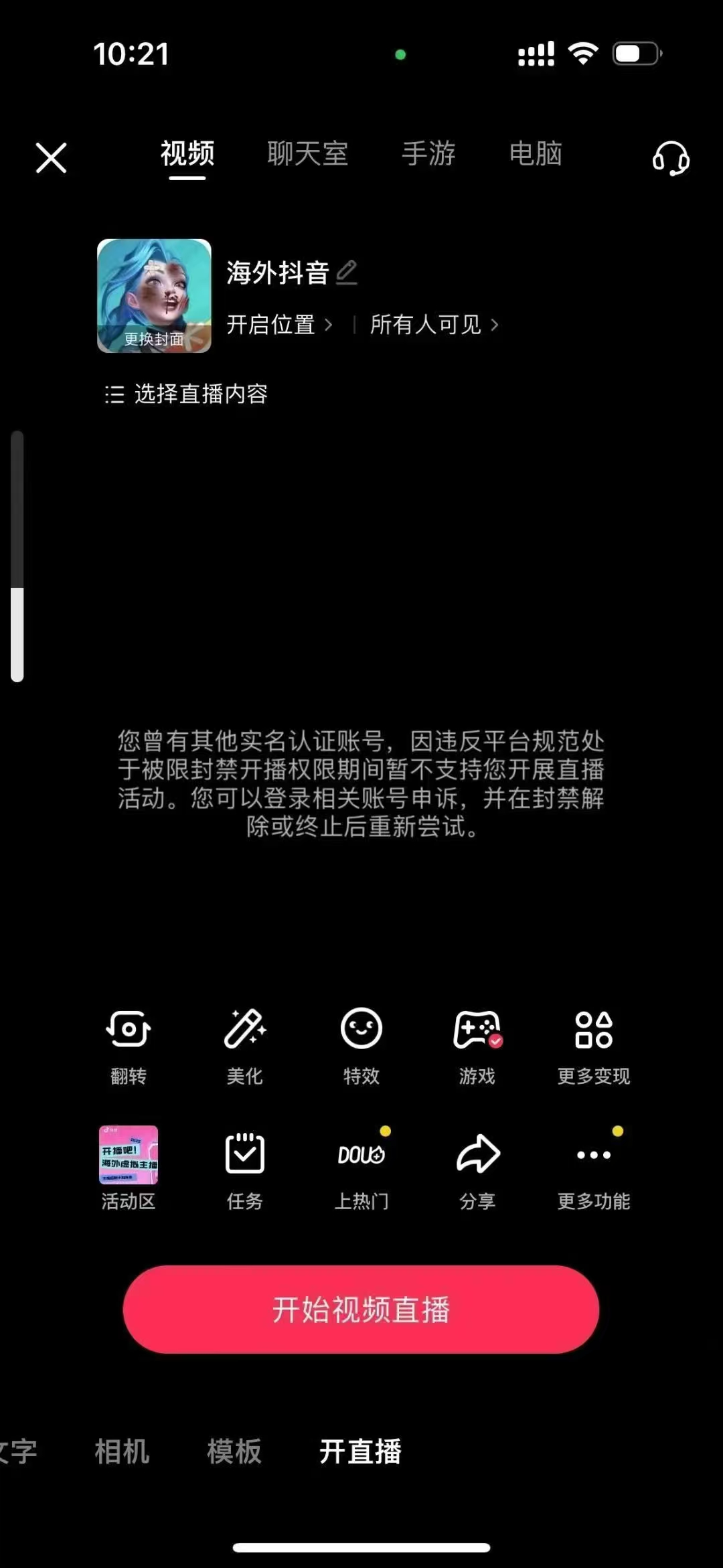 【18666】抖音开播显示其他实名账号封禁解决方法,效果自测,不保证百分百有效