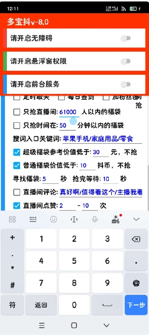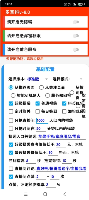 自动秒抢红包,福袋。