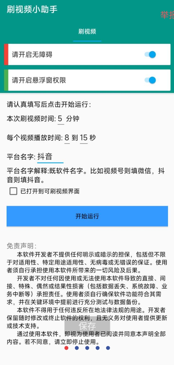 【软件简介】软件可设置刷视频时长,每个视频随机刷多久或固定时间,还可以设置不同平台,一个软件让你解决所有平台,操作简单,纯养号必备