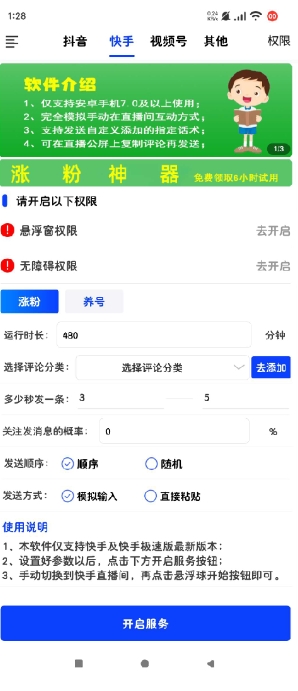 直播暖场神器各平台涨粉 养号神器【建议会员试用】【应 用 名 称】:看播助手