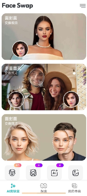 1. 提供丰富的换脸功能,让你的照片和视频栩栩如生地变换面孔。