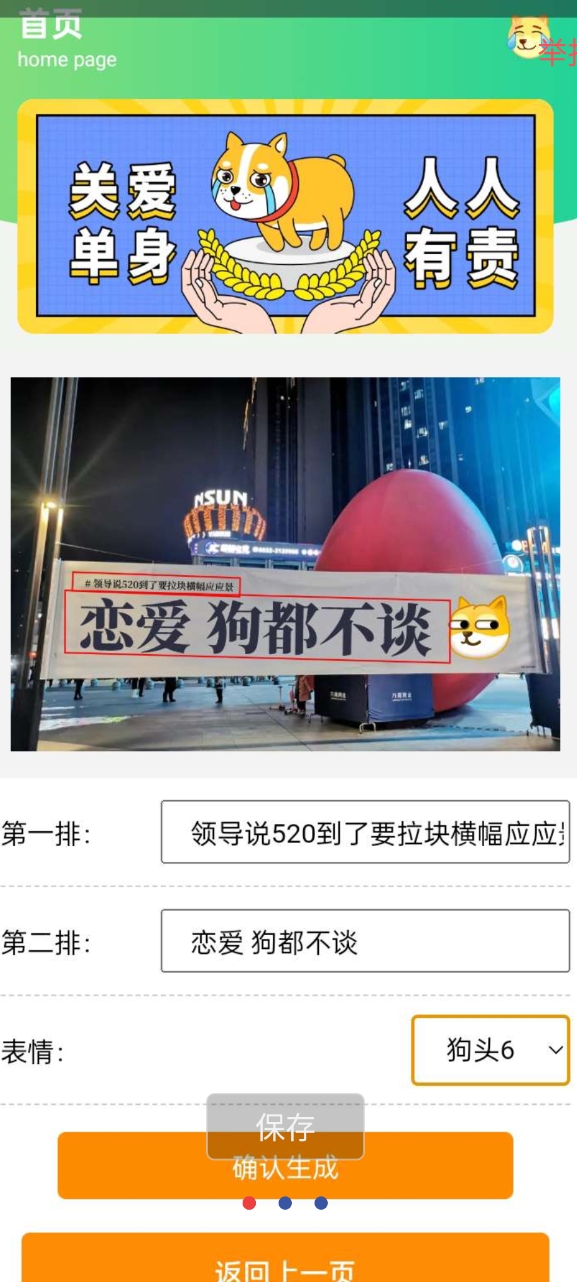 ⭕:趣味横幅、整蛊文案、反向祝福应有尽有,支持一键生成专属搞怪内容。无论是自嘲单身、调侃情侣,还是整活整蛊,你的横幅就要玩点不一样的