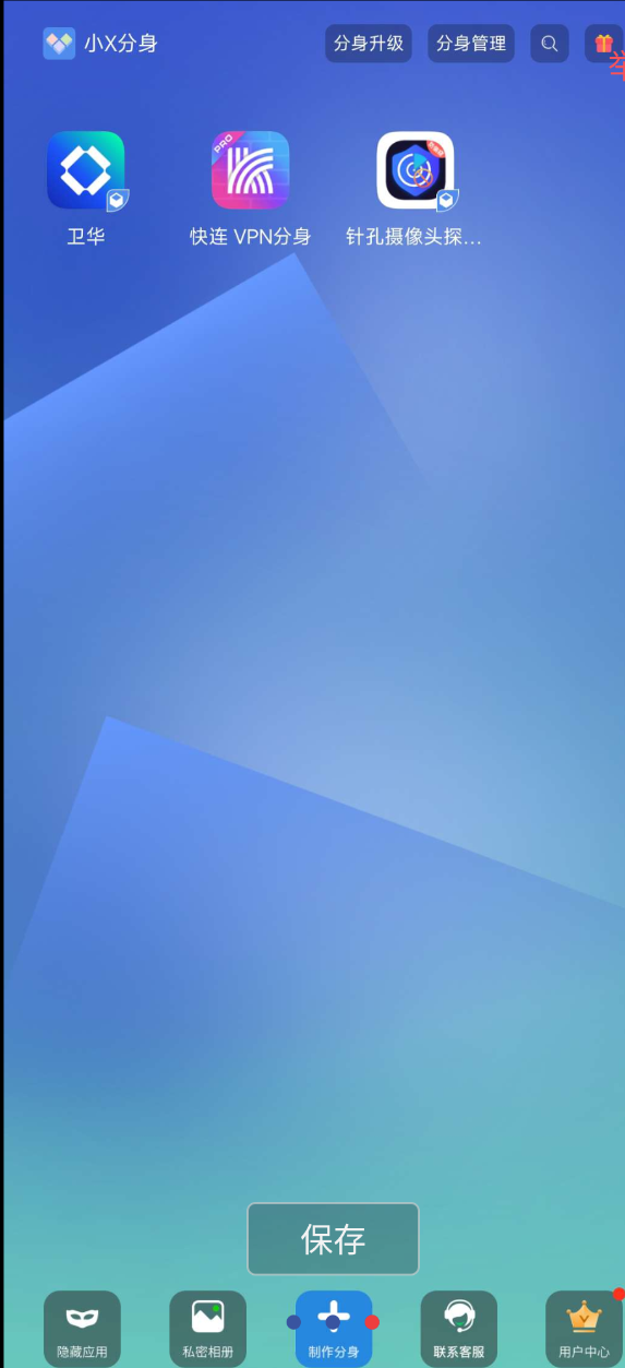 轻松实现本地软件和游戏的多开、双开,微商、娱乐、游戏用户必备神器!【应用名称】:小X分身
