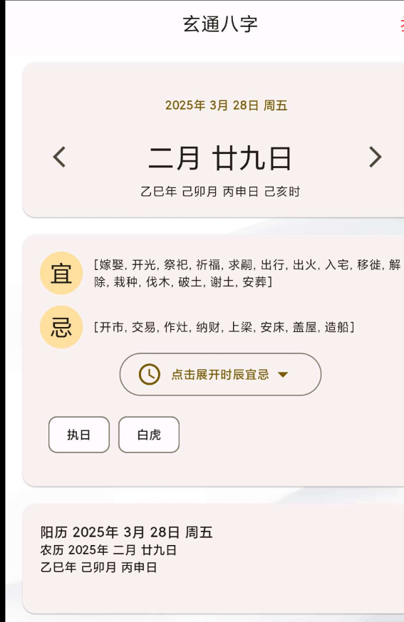 一个集成了丰富易学文化和周易工具的综合APP。为用户提供了广泛的易学知识,涵盖了周易、八字、命理等多个领域。通过这个APP,用户可以学习和了解易学文化的历史渊源、核心理论和应用方法。易学文化提供了易学经典的解读和研究资料,让用户深入探索周易的智慧。此外,平台还包括了丰富的周易工具,如八字排盘,帮助用户进行个人命理分析、运势预测和布局。无论是学习、研究还是实践应用,这个易学文化与周易工具平台为用户提供了一个全面的资源和工具,助您深入探索易学文化的奥秘,运用周易工具指引人生。