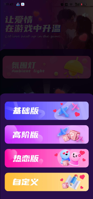 浪漫约会氛围灯异地互撩必备内置多重飞行棋氛围灯。【应用名称】:情侣私密互动日常