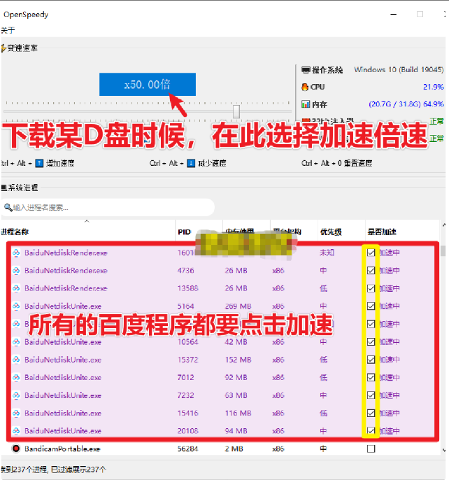 【软件介绍】OpenSpeedy是一款专为 Windows 平台设计的开源且免费的游戏速度调节工具。加速游戏是它主要的功能,但是我没测试,误打误撞居然被发掘出来居然支持提速网盘下载,经过本人多网盘实际测试,亲测某D盘可以加速使用。