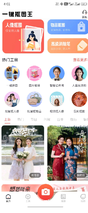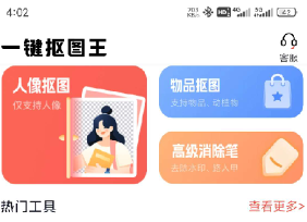 一键出图,发丝级抠图神器,一键抠出图片中的人物,动物,产品,图章等内容软件包括了一键智能抠图、人物物品换背景、证件照换底色等功能。【应用名称】:一键抠图王