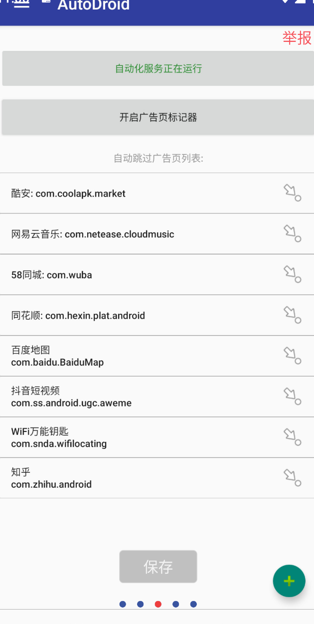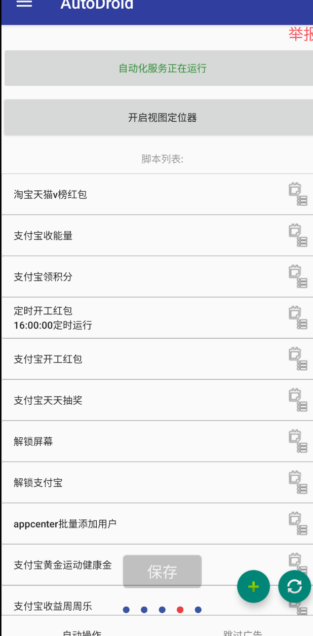 自动卓AutoDroid (免Root 免Xposed) 包含两大功能: 1. 自动化操作:可以实现自动发信息、自动发朋友圈、签到、收能量等操作,还支持定时运行等多种模式。脚本基于JavaScript语言,并支持脚本录制,简单易用。 2. 自动跳过广告:自动跳过应用首页广告,还能指定跳过应用内的某个广告页。 需要开启'辅助功能'/'无障碍'服务,具体方法请自行查询。 本应用耗电量极低,请给予自启动权限并加入后台清理白名单。 (Android 6.0设备触摸操作需要Root)