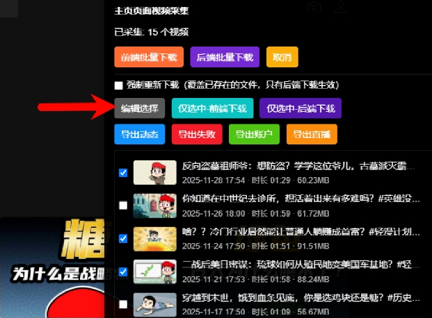 3. **批量下载**:进入博主主页,点击右上角的批量下载选项,可以选择需要下载的视频。